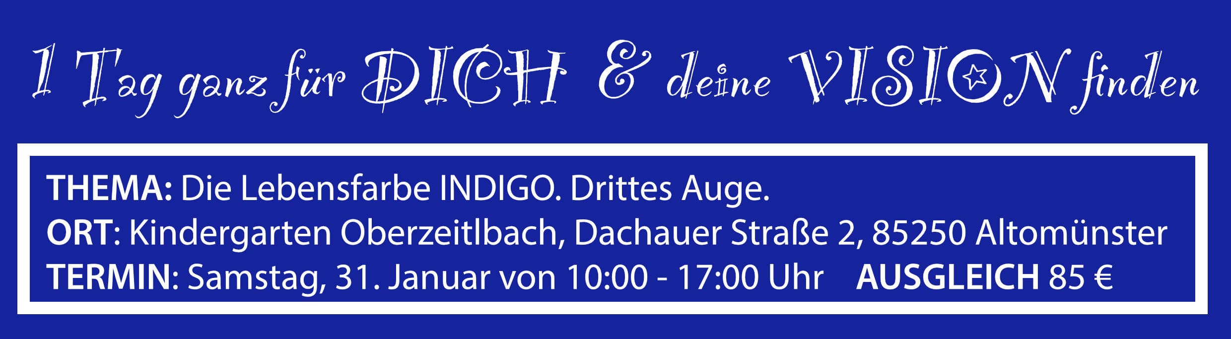 An diesem Tag werden wir tief eintauchen in die stille, tiefe Kraft unseres Geistes. Tiefblau wie der sternenklare Nachthimmel … Langsam erinnern wir uns wieder – wir sind Schöpferwesen! Dieses Wissen wirklich zu leben ist eine große Bereicherung und Herausforderung zugleich. Denn wir sind geprägt von unseren Glaubenssätzen und Meinungen über uns selbst und die Welt. Unser drittes Auge verbindet uns mit unserer inneren Schau, der Gabe der Intuition.