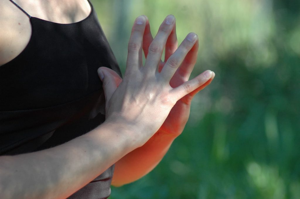 Lege alle Fingerspitzen auf Brushöhe aneinander, die Handflächen sind nicht geschlossen.